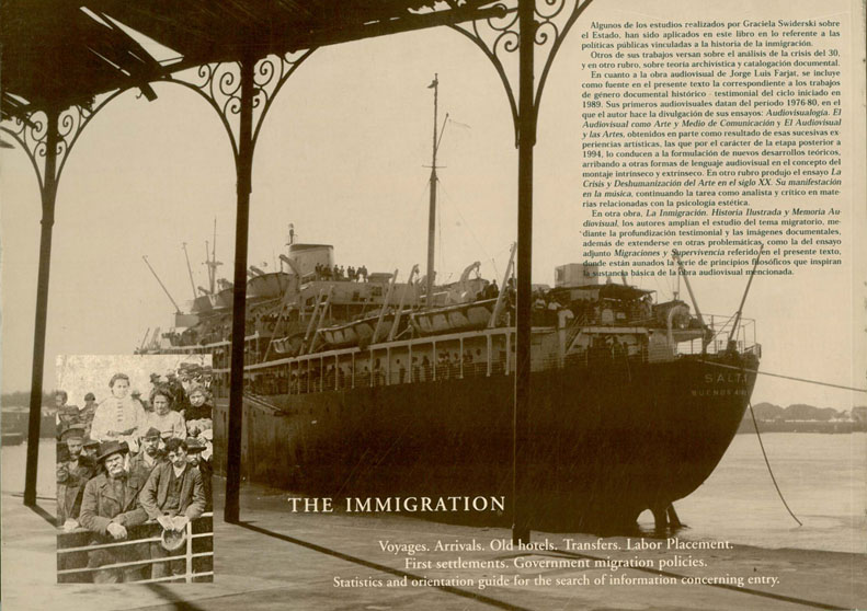Este libro corresponde al texto extraído por los autores de su obra titulada: La Inmigración. Historia Ilustrada y Memoria Audiovisual, editada en dos tomos, acompañada a su vez del ensayo Migraciones y Supervivencia de Jorge Luis Farjat y de una selección iconográfica de la obra audiovisual del mismo autor.