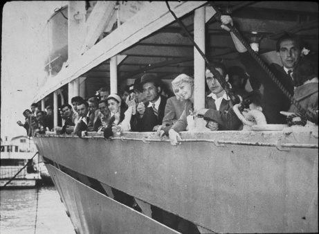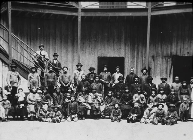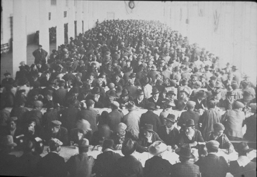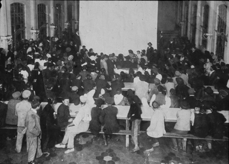 Inmigrantes en el interior del Hotel de la Rotonda. Imagen del audiovisual. Original Archivo Gral de la Nación.