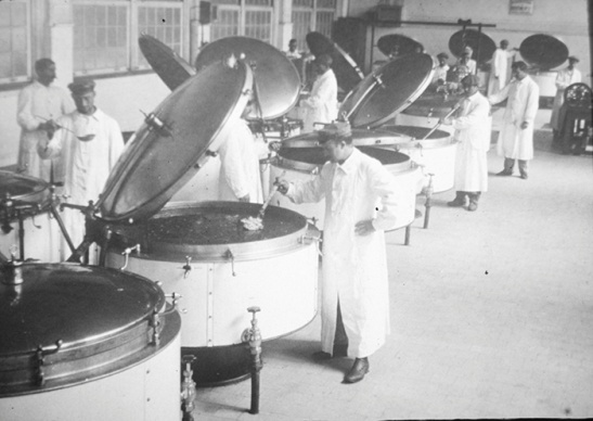 Imágenes de época correspondientes a la cocina del Hotel de Inmigrantes y al gran comedor de la planta baja (Originales Museo de la Cuidad), y de la última mesa comedor obtenida en 1989. Pertenecientes al audiovisual Los Antiguos Hoteles de Inmigrantes de Jorge Luis Farjat.