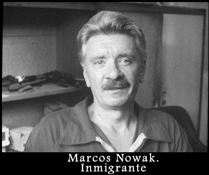 Manuel Ortiz, protagonista y relator de la escena del audiovisual correspondiente al Desembarcadero, capítulo central de la obra, y mujer inmigrante de origen checo. Los Antiguos Hoteles de Inmigrantes, audiovisual.